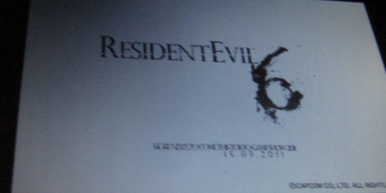 "Pero lo más interesante es que se confirma y nos mostró 'Resident Evil 6' logo. Ellos no nos ningún detalle acerca dek juego, pero mencionaron que habrá más actualizaciones al respecto, se dará este 15 de septiembre en el TGS. No se permite grabar vídeo o tomar fotos durante la conferencia, pero me las arreglé para hacer una foto sin que nadie lo note. "